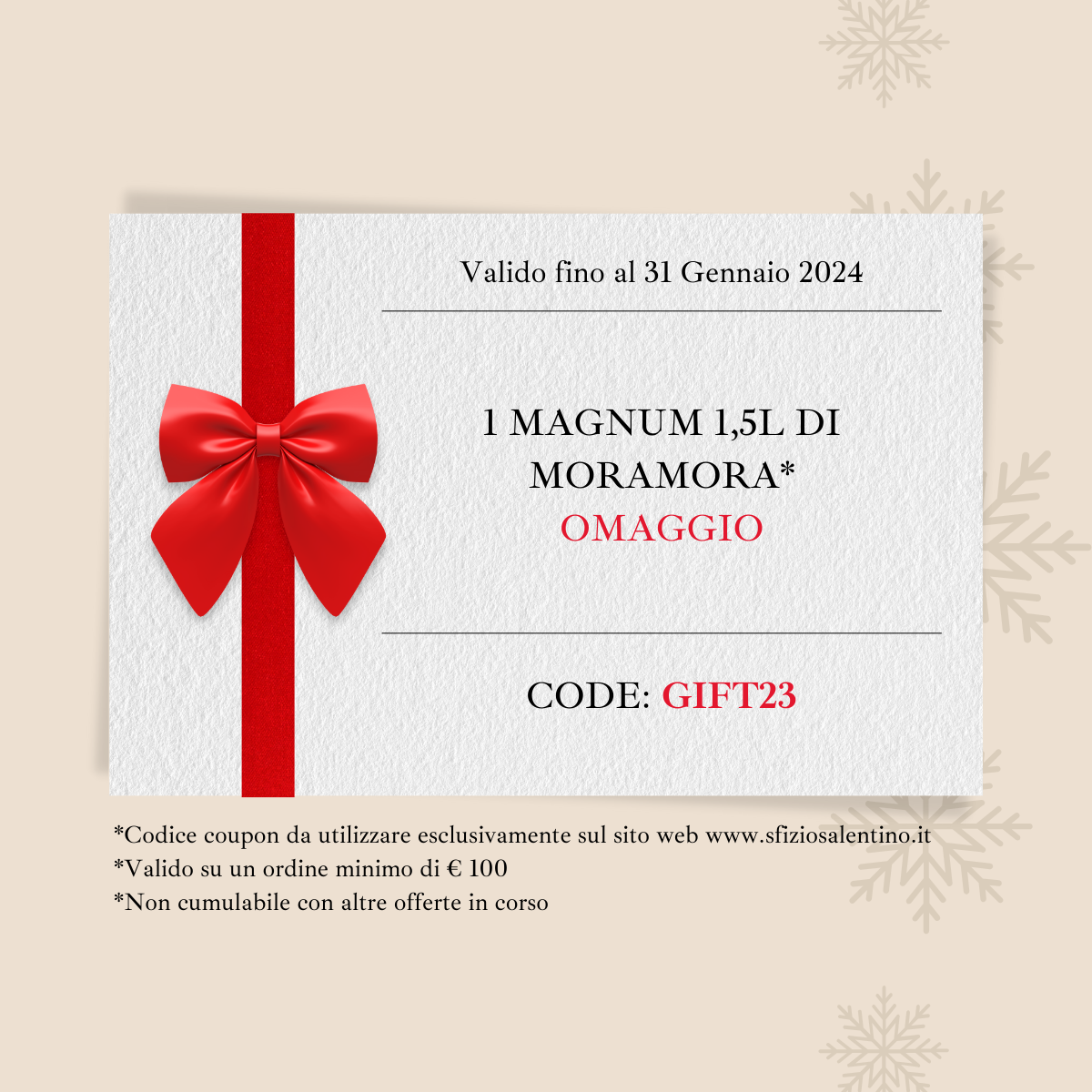 ☑️ Ricevi il tuo omaggio su un ordine minimo di € 100 inserendo il codice coupon nella fase di check-out